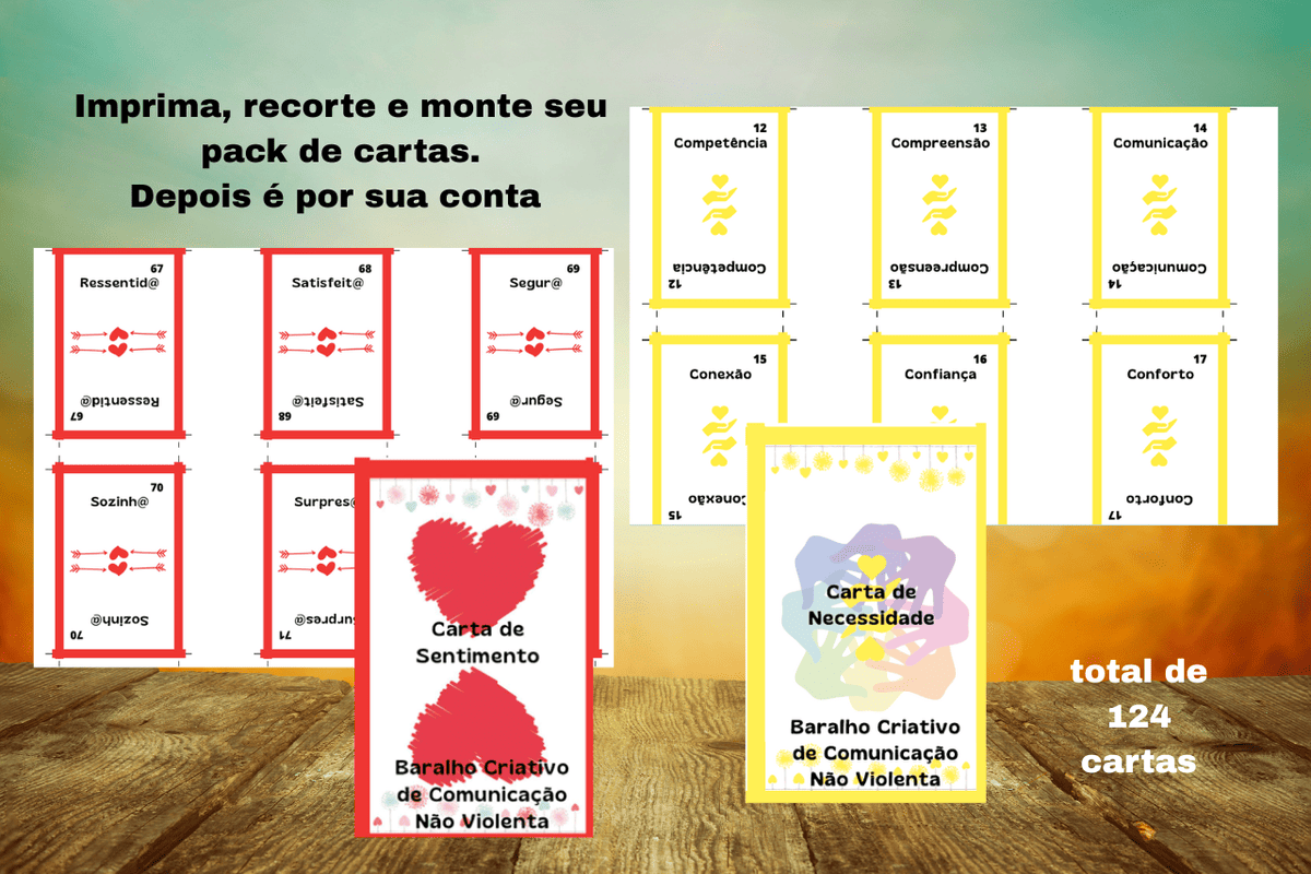 ❌ Pack com 124 cartas (sentimentos e necessidades) – imprimir e jogar